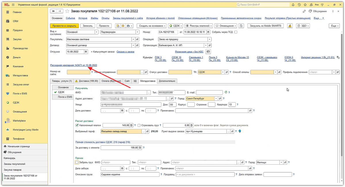 Чтобы собирать заказы из всех каналов в едином интерфейсе, мы порекомендовали внедрить решение «1С:Управление нашей фирмой» (далее – «1С:УНФ») и модуль собственной разработки для интеграции с маркетплейсами. Они позволили автоматизировать работу сотрудников в офисе «Удачного Сезона» и на складе компании.